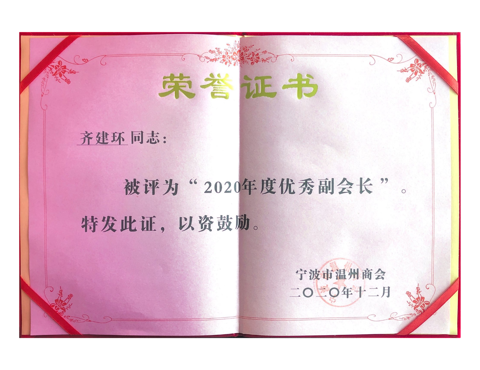 齊建環(huán)先生榮獲2023年度溫州商會(huì)副會(huì)長(zhǎng)
