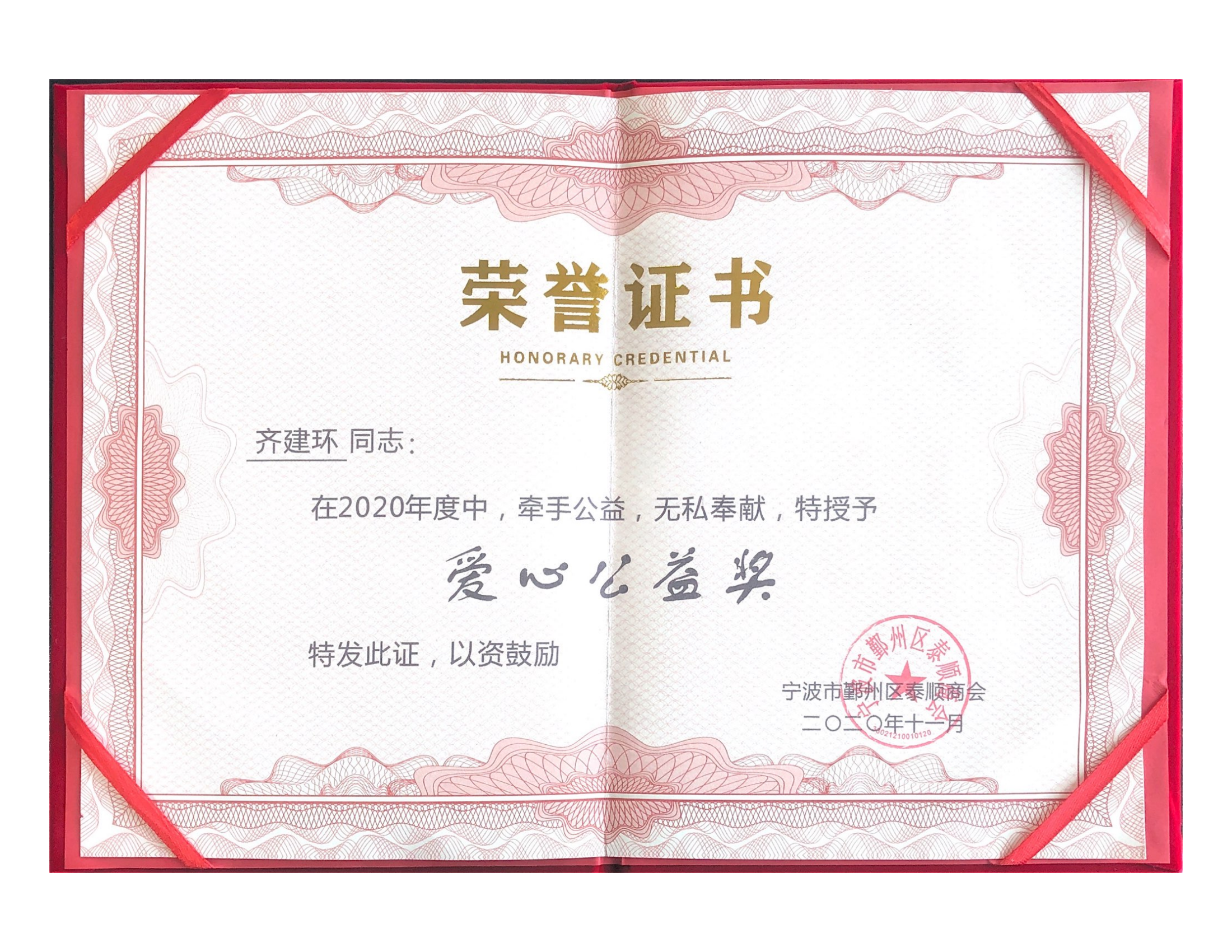 齊建環(huán)先生榮獲2020年度愛心公益獎(jiǎng)