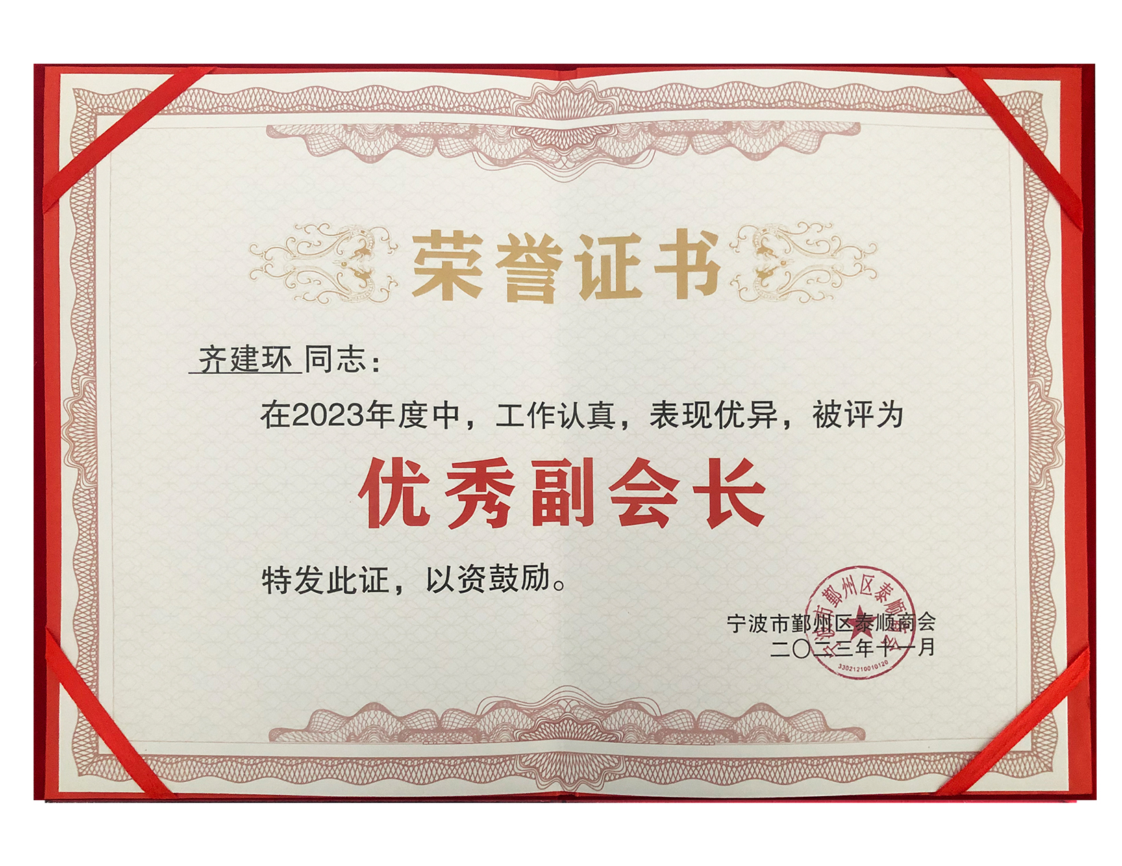 齊建環(huán)先生榮獲2023年度泰順商會(huì)副會(huì)長(zhǎng)