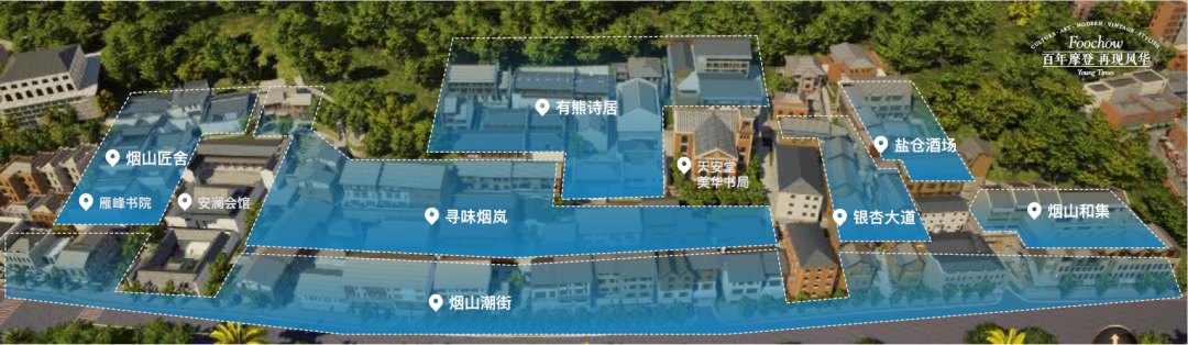 根據(jù)煙臺山商業(yè)漫步街區(qū)“九巷雙街”的空間規(guī)劃,其商業(yè)動線呈現(xiàn)為“一主街、雙環(huán)線、三組團(tuán)、九巷道"的空間格局,其中“三組團(tuán)”分別為西區(qū)、中區(qū)、東區(qū)。