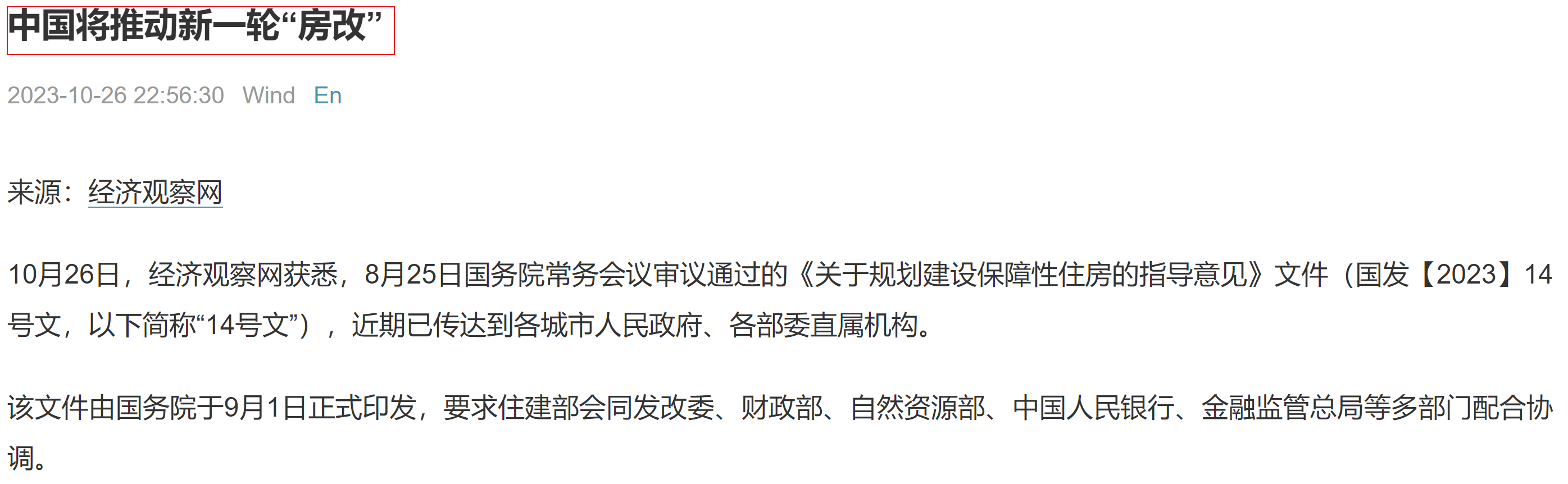經(jīng)濟(jì)觀察網(wǎng)給出的新聞標(biāo)題是:中國將推動(dòng)新一輪“房改”。