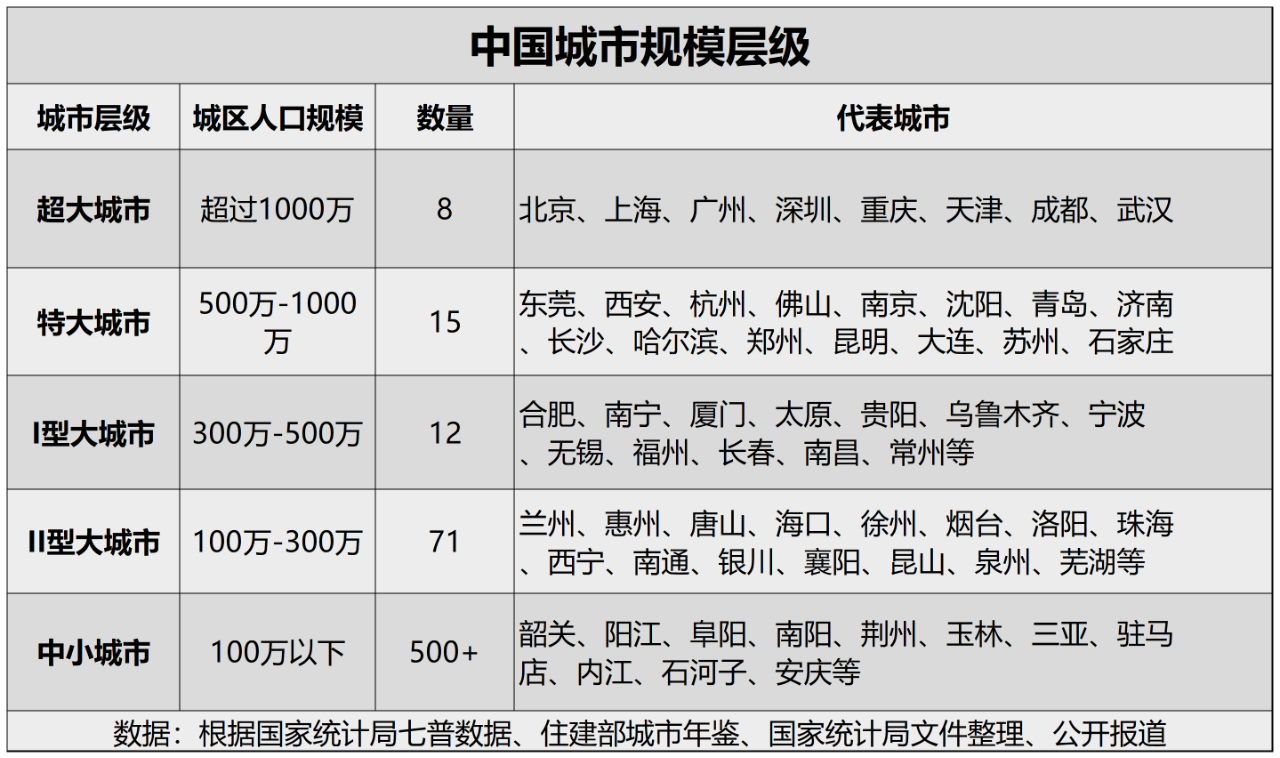 但三年時(shí)間,變化很大,其中武漢隨著人口回流,城區(qū)人口已經(jīng)突破千萬成為了超大城市,蘇州因?yàn)楣I(yè)園區(qū)的行政代碼升級,成功晉級為特大城市。石家莊官方也在今年披露城區(qū)人口突破了500萬,晉級特大城市。