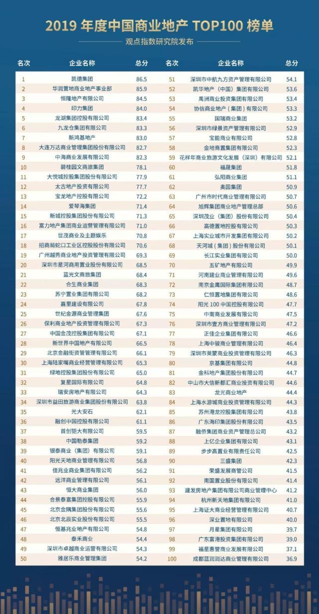 2019年度中國(guó)商業(yè)地產(chǎn)TOP100,百?gòu)?qiáng)企業(yè)在這榮譽(yù)榜單中用數(shù)據(jù)展現(xiàn)他們的實(shí)力,用成績(jī)續(xù)寫(xiě)他們的輝煌。