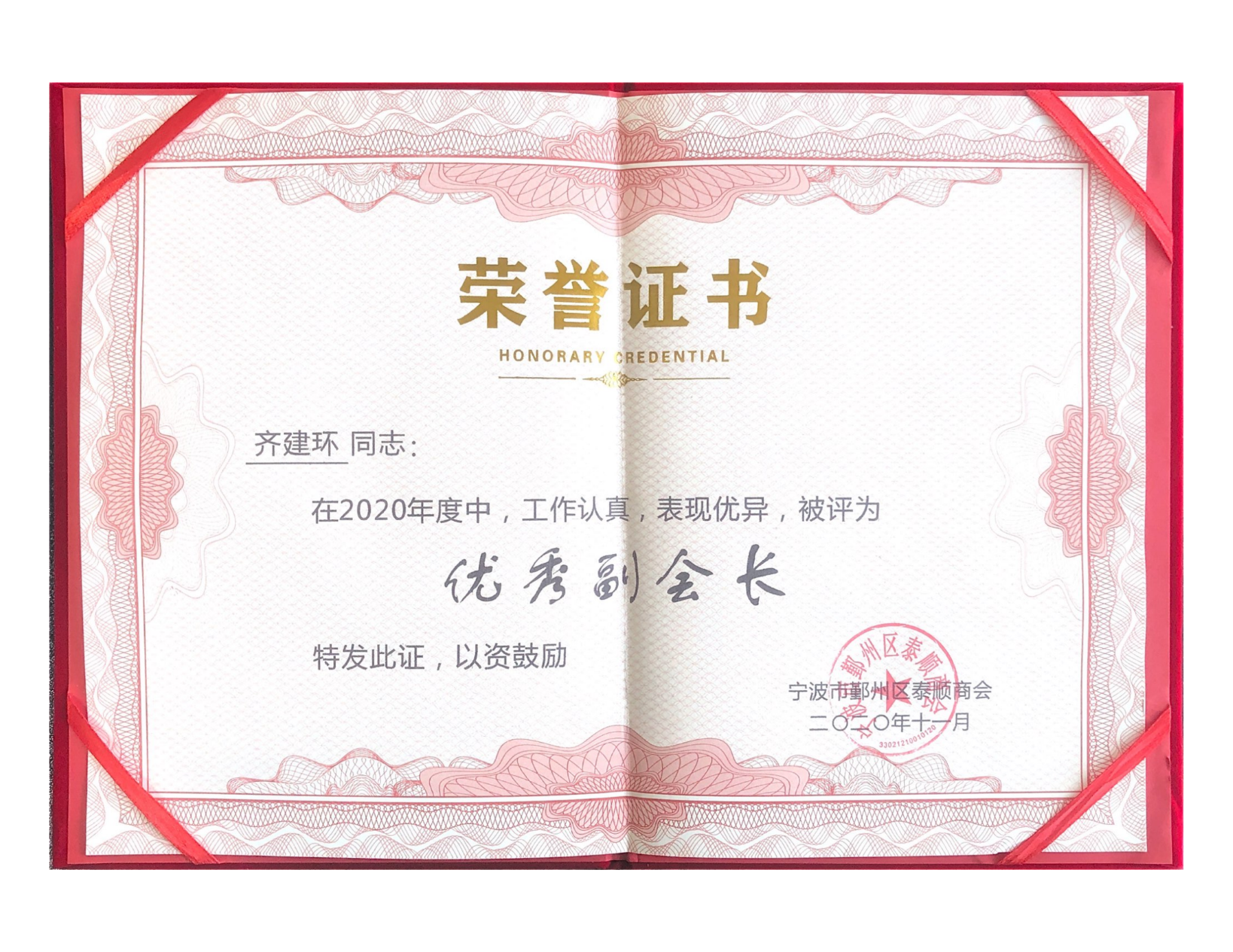 齊建環(huán)先生榮獲2023年度泰順商會(huì)副會(huì)長(zhǎng)