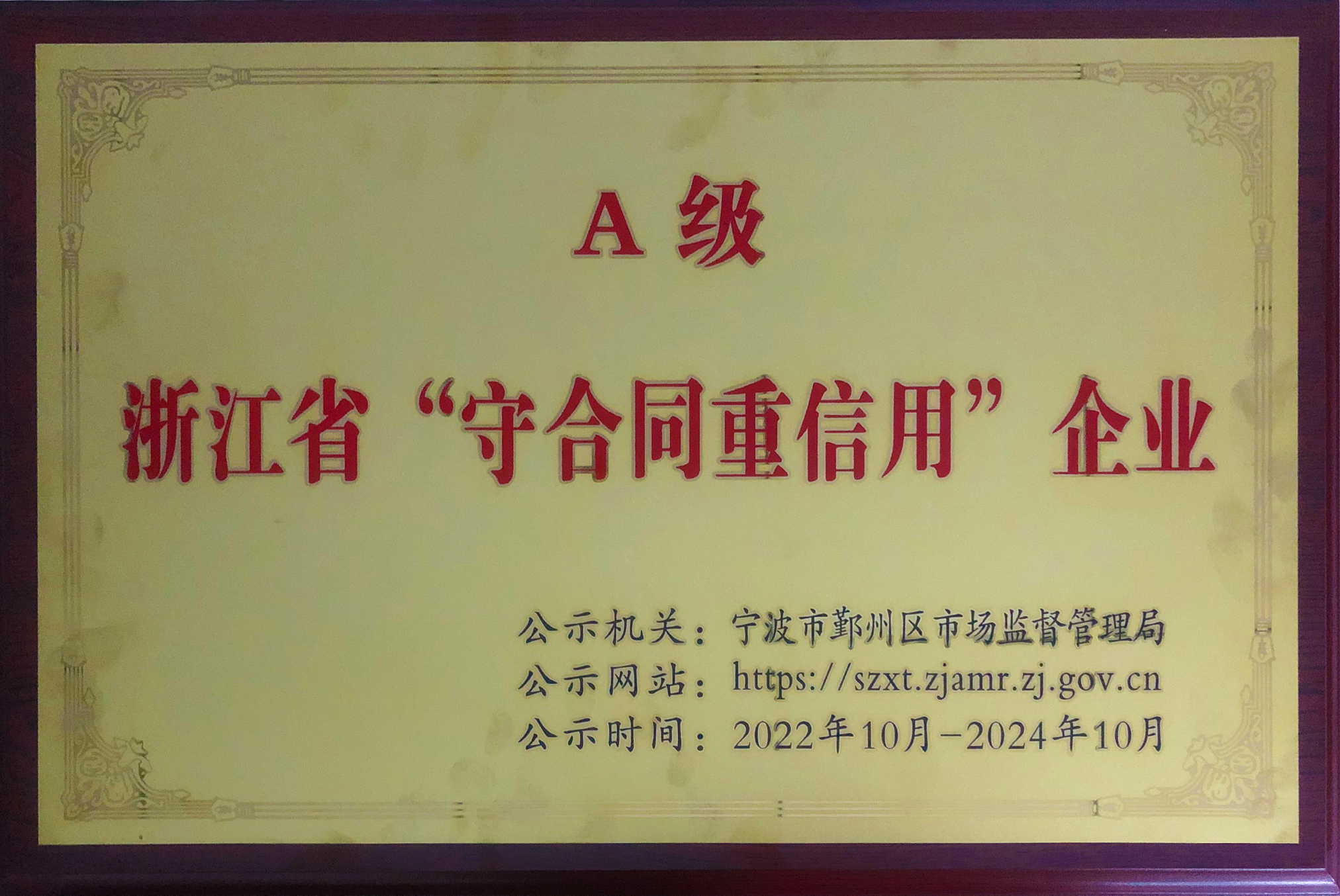 浙江省A級(jí)“守合同重信用”公示企業(yè)