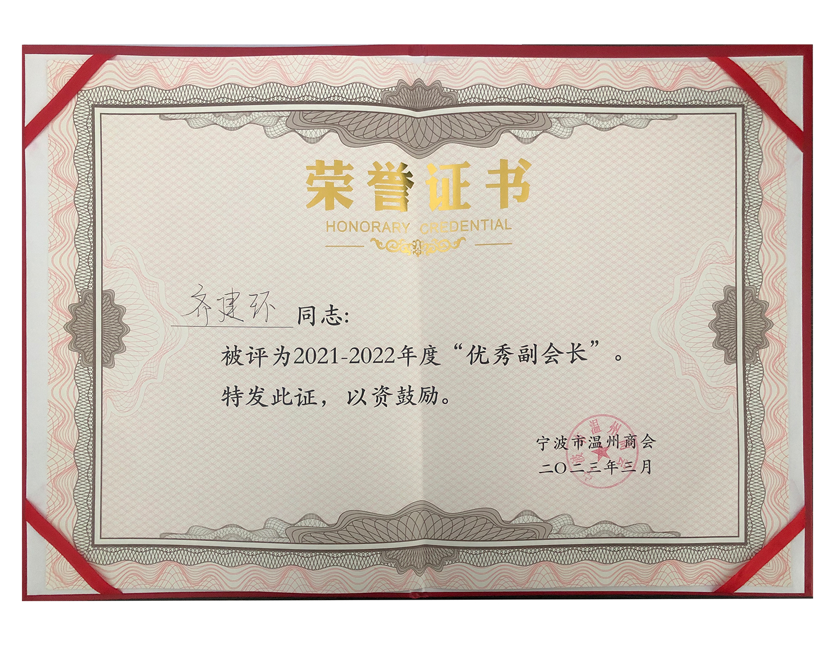 齊建環(huán)先生榮獲2023年度溫州商會(huì)副會(huì)長(zhǎng)